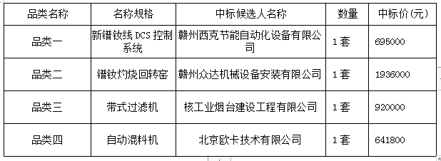国家重点研发计划“离子型稀土产业集聚区域网络协同制造集成技术研究与应用示范”课题三稀土冶炼流程管控一体化集成技术及系统示范建设相关采购中标公示