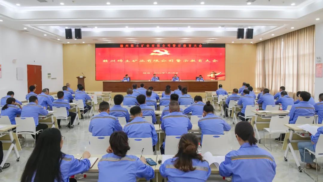 7月18日,赣州稀土矿业有限公司召开警示教育大会,深入贯彻党的二十大、二十届中央纪委二次全会精神,发挥典型案件的警示震慑作用,以案为鉴、警钟长鸣,持续筑牢党员领导干部拒腐防变的思想防线。公司党委书记、董事长黄华勇出席会议并讲话,公司领导李程亮、何巧燕、何结锋参加会议。