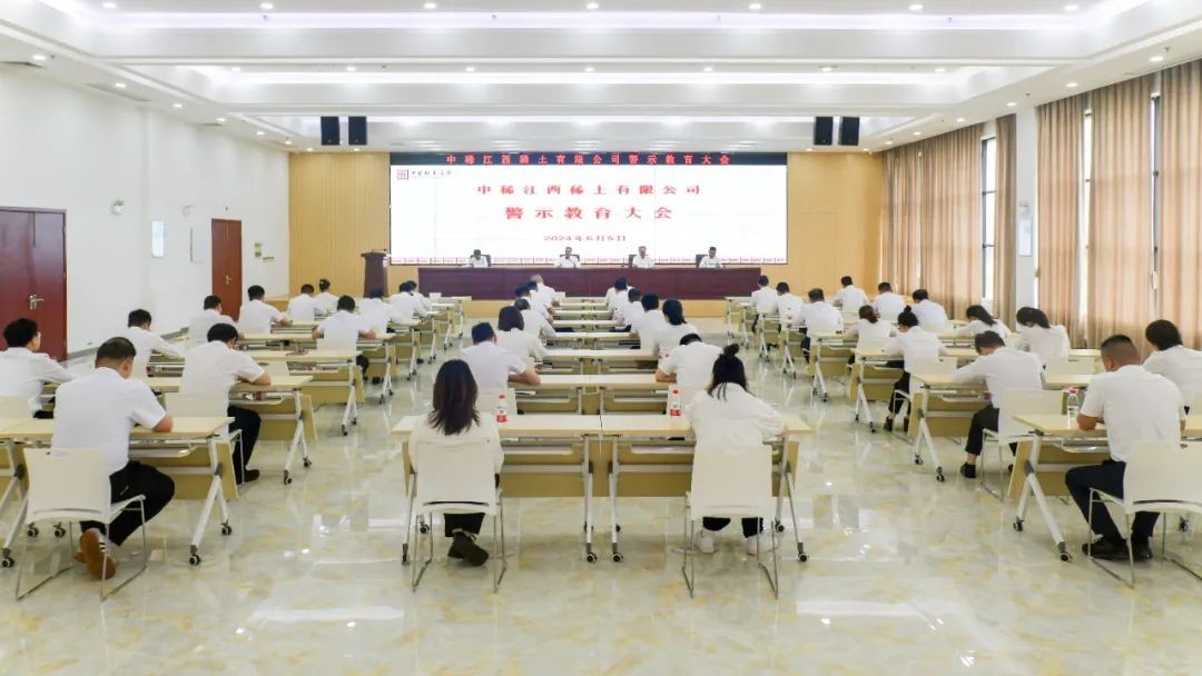 6月5日,公司召开警示教育大会。会议深入学习习近平总书记关于党的自我革命战略思想,贯彻落实党中央关于党纪学习教育的统一部署和国务院国资委党委、中国稀土集团党委的工作要求。会上集中观看警示教育片,深入剖析典型案例,强化以案为鉴、警钟长鸣,在公司上下营造风清气正的良好政治生态。公司领导班子成员参加。