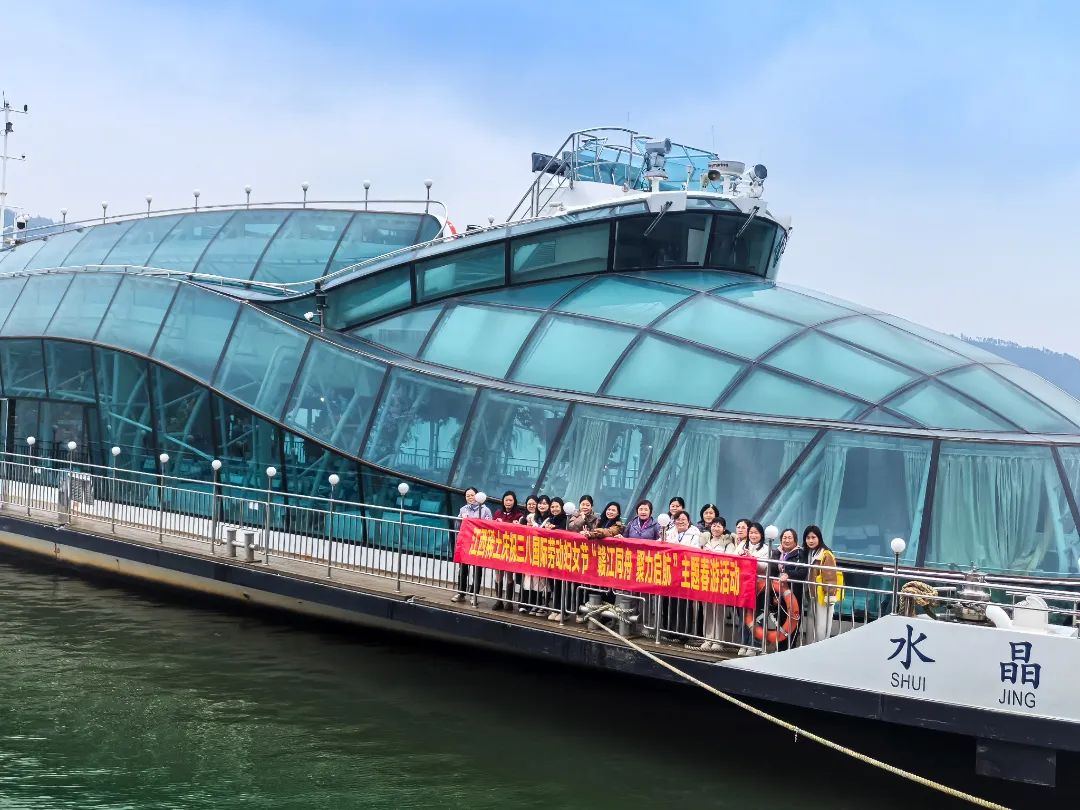 3月7日清晨,赣州章贡区龟角尾码头彩旗招展,装饰一新的 "水晶之恋" 邮轮承载着公司本部女职工驶向春日画卷。随着邮轮缓缓启航,"赣江同舟 聚力启航" 主题活动正式拉开帷幕。女职工们凭栏远眺,欣赏着 "三江交汇" 的壮丽景观,纷纷用手机记录下赣江两岸的旖旎风光。