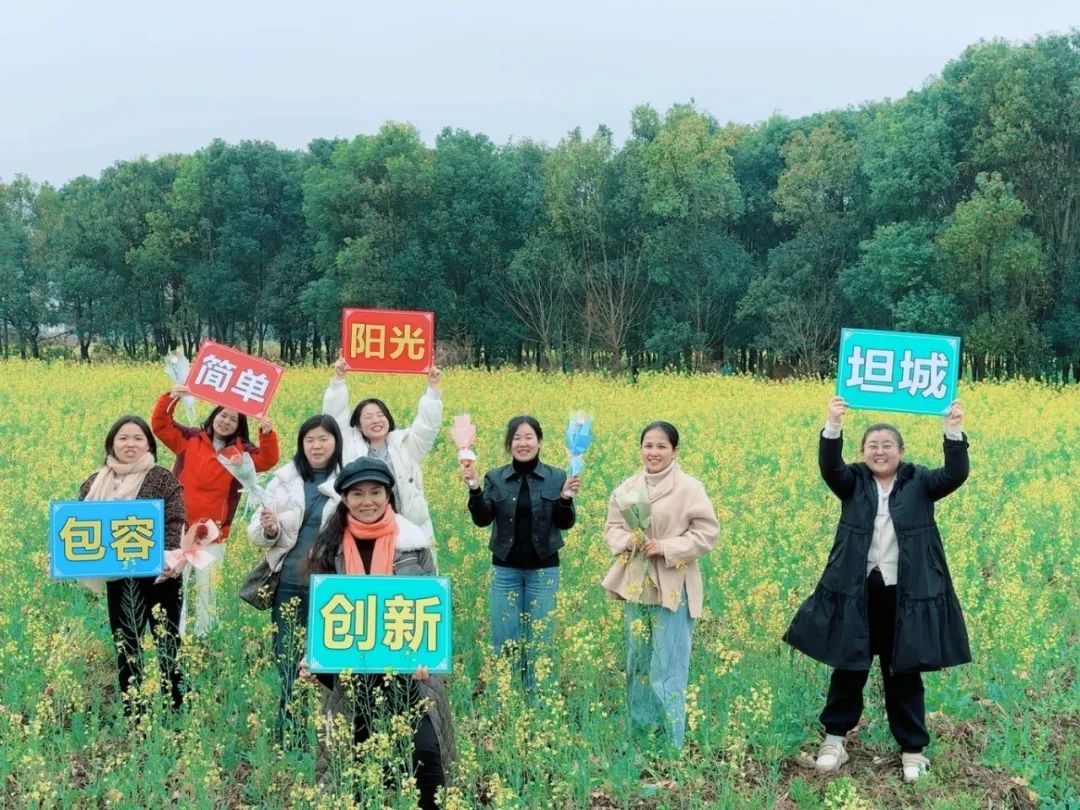 与此同时,定南、龙南、信丰分公司联合开展 "稀土巾帼绽芳华 联建共庆春意浓" 主题活动。在金色油菜花田组成的天然画卷中,女职工们手持 "阳光、坦诚、包容、简单、创新" 企业文化牌,共同宣读《稀土巾帼宣言》,将个人职业理想与企业发展愿景紧密相连。