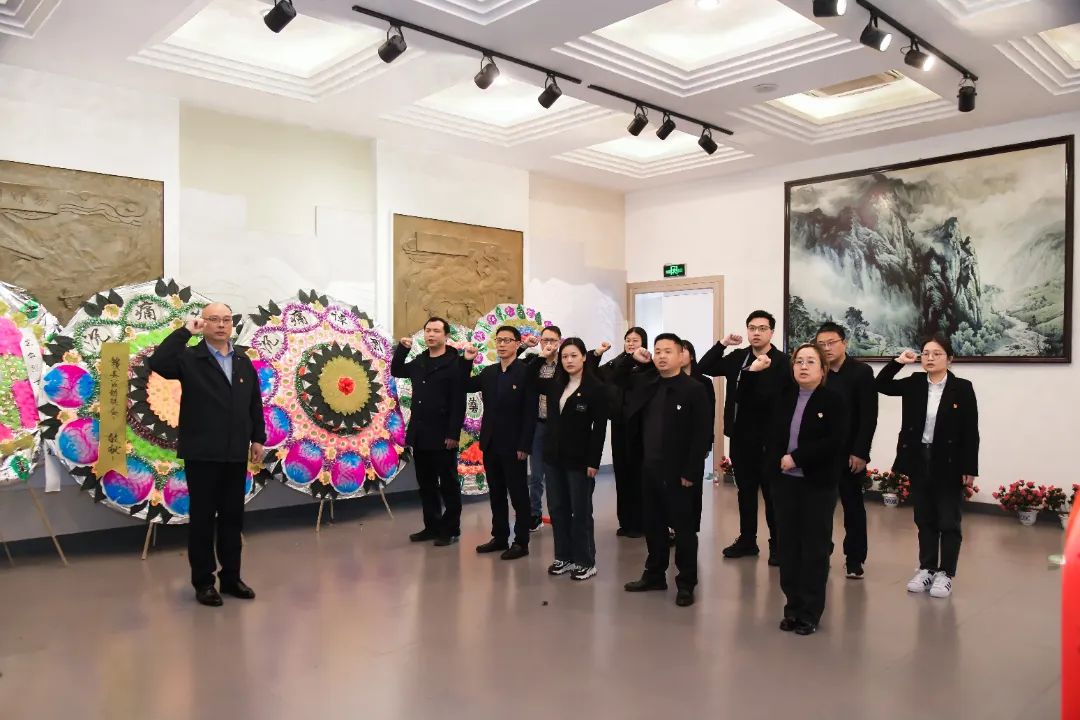 献花仪式上,全体党员整齐列队,敬献鲜花、鞠躬默哀,寄托无限哀思。面对鲜艳党旗,党员们庄严重温入党誓词,铿锵誓言彰显对党忠诚、为共产主义事业奋斗终身的坚定信念。