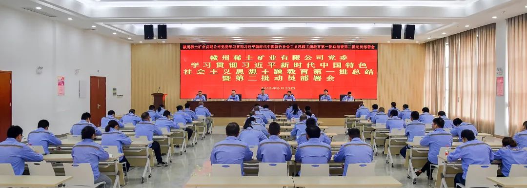 9月23日,赣州稀土矿业有限公司党委在公司本部召开学习贯彻习近平新时代中国特色社会主义思想主题教育第一批总结暨第二批动员部署会议,认真学习领会习近平总书记重要讲话和重要指示批示精神,贯彻落实党中央、国资委党委和集团公司党委主题教育第一批总结暨第二批部署会议精神,全面总结公司第一批主题教育做法成效,对开展第二批主题教育进行动员部署。公司党委书记、董事长黄华勇出席会议并讲话,党委副书记、总经理叶春林主持会议,公司领导李程亮、何巧燕、钟瑞林、何结锋出席会议。